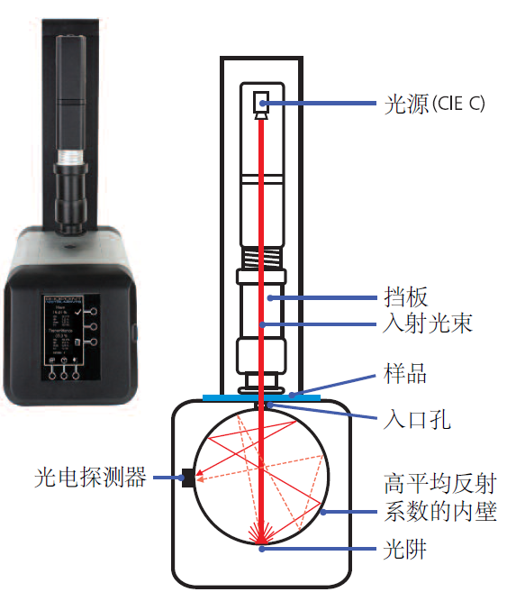 該儀器根據ASTM D1003 (CIE C)測量總透射和霧度,這是在大多數 QA質量保證應用中使用的重要的標準。